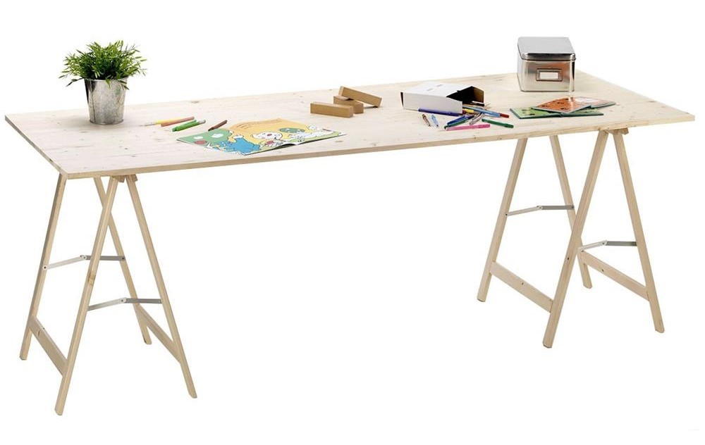 • Composto da un piano in Abete naturale e due cavalletti